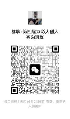 4.报名成功的参会团队负责人扫码加入到“第四届“京彩大创”大赛沟通群”,如二维码过期失效,可联系学院创业负责老师或学校联系人邀请进群。还需联系学生负责人进入学院创新创业赛事交流微信群。