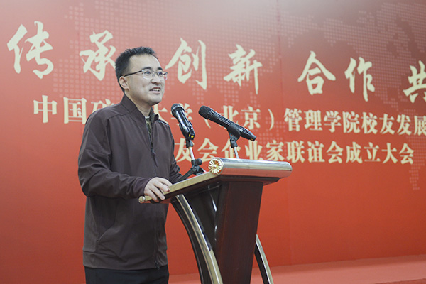 校友会会长安景文向企业家联谊会授旗,校友会王立杰会长向企业家联谊会提出要求,校友企业家代表张爱静、宗建军、孙金涛表示要将广大校友企业家凝聚在一起,加强校企合作、校友合作,促进资源共享,实现发展共赢。