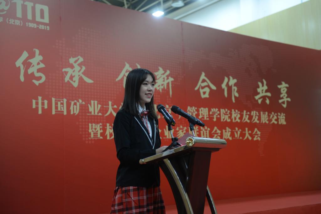 校友代表张爱静介绍校友会企业家联谊会筹备情况