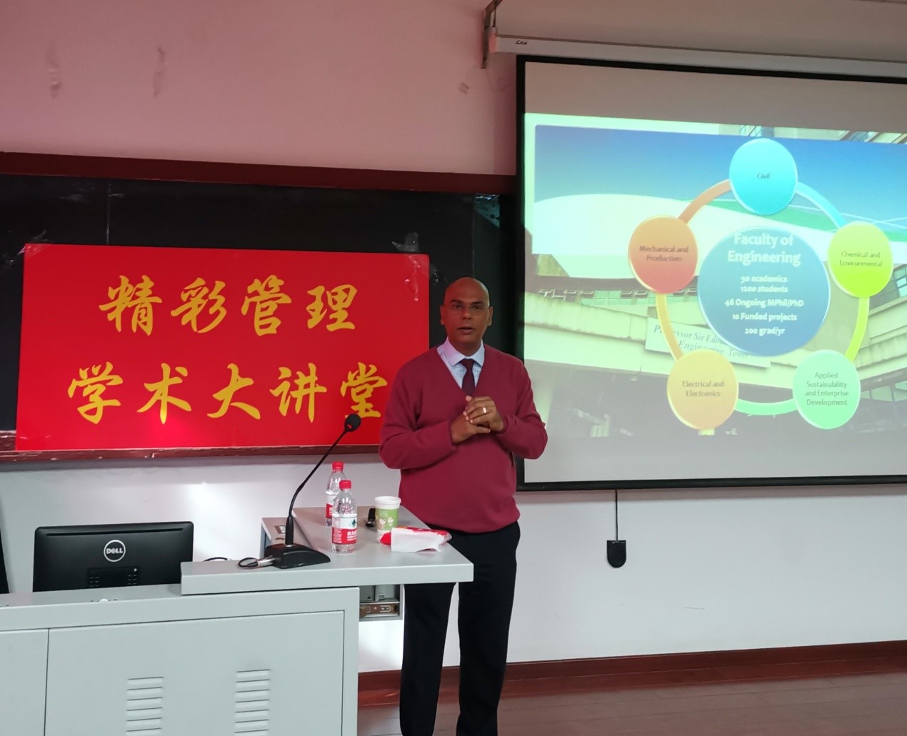 邀请了来自毛里求斯大学工程学院的丹尼斯教授向管理学院近百名研究生作了题为《迈向绿色城市》的主题讲座。