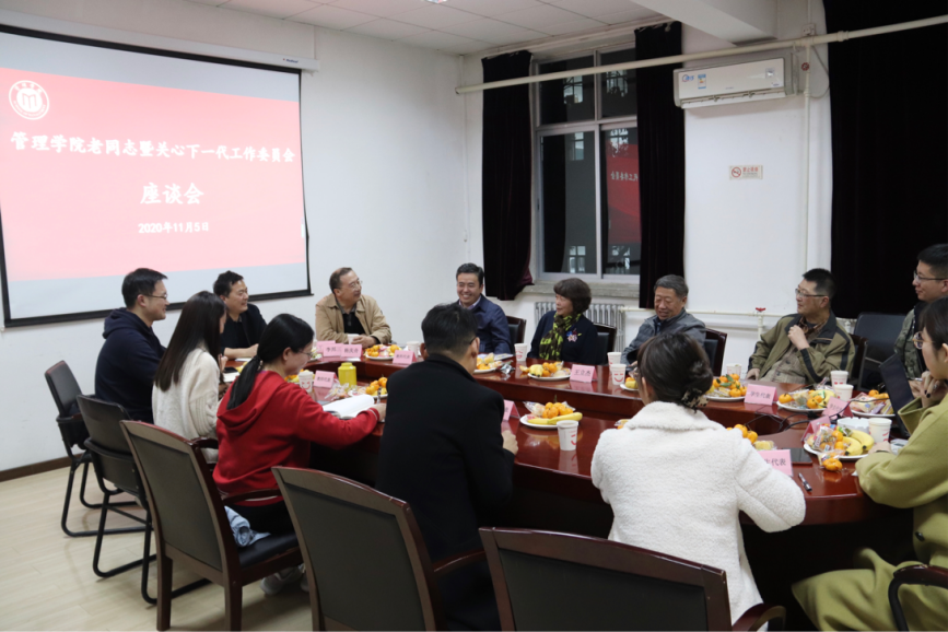 11月5日下午,管理学院老同志暨关心下一代工作委员会座谈会于管理学院302会议室召开。学院邀请关工委副主任王立杰、成员颜秋许,退休教师李超英来院座谈。会议由院党委书记兼关工委主任杨庆舟主持,院长丁日佳、院党委副书记李邦三及4名教师代表、6名学生代表参会。