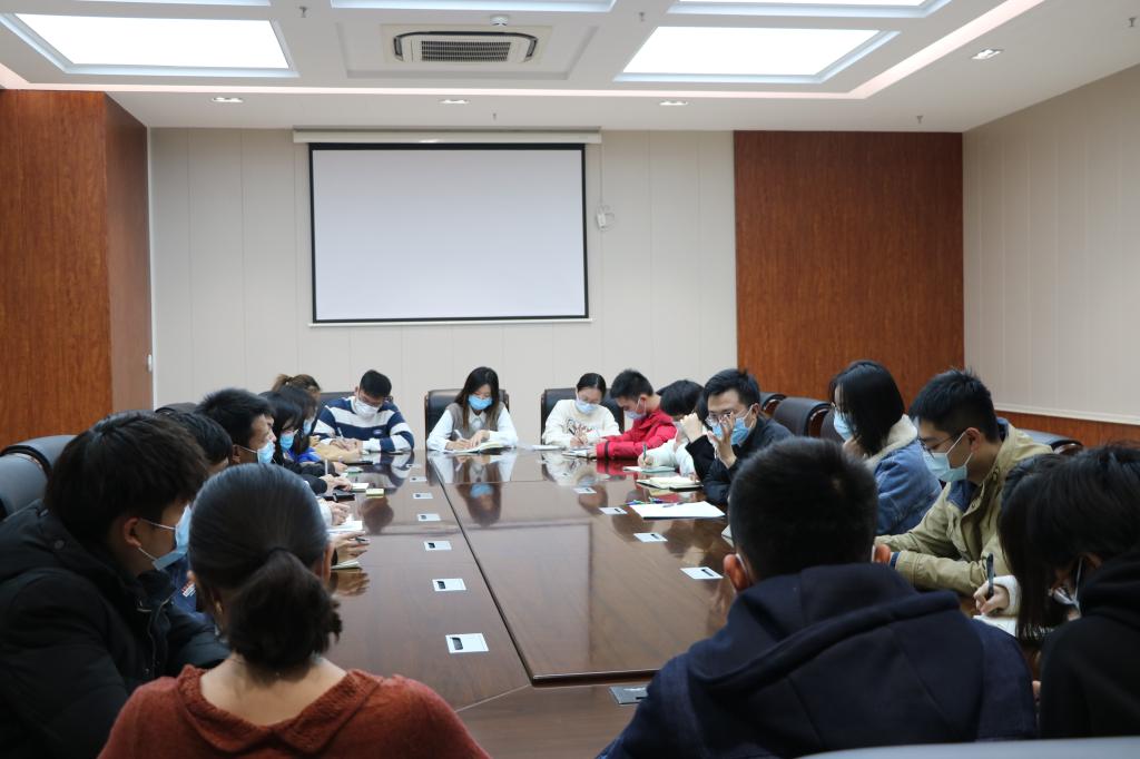 本网讯 11月17日,管理学院沙河校区本科生党支部就十九届六中全会精神开展集中座谈学习。院团委副书记、本科20级党支部书记王刚,本科21级党支部书记、21级辅导员杨柳,本科20级和21级党支部全体党员、发展对象以及本科21级各班团支书参加学习。王刚主持座谈会并作领学分享。