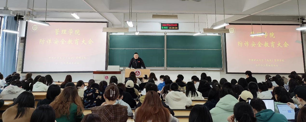 4月6日下午,管理学院防诈安全教育大会在学院路校区教学楼106教室成功召开。邀请东升派出所刘警长进校宣讲、校保卫处安全科科长赵文峰、管理学院专职组织员崔艳娜、学工办主任李烁玮、本科19级辅导员楼燕以及管理学院200余名在校学生代表参加大会。