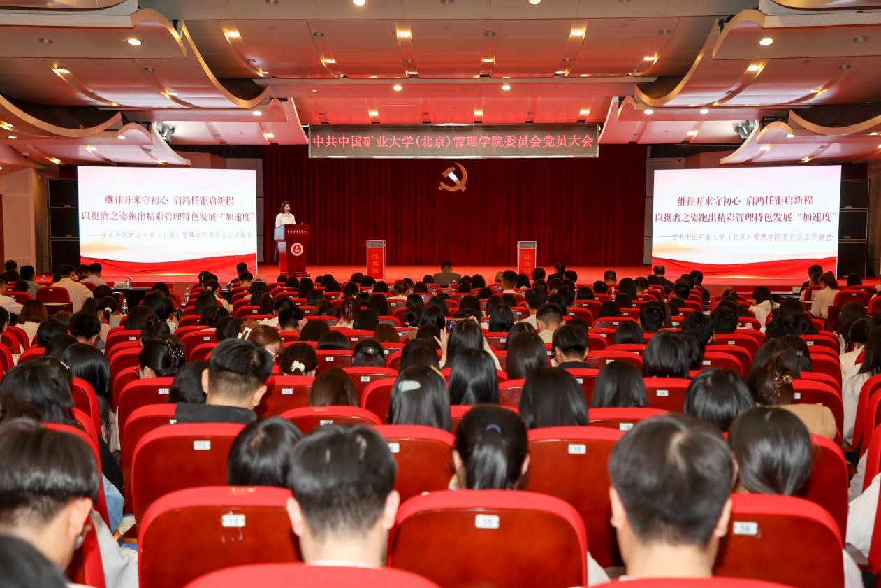 大会在科技会堂庄严举行,校党委组织部部长杨大鹏、管理学院党政领导及全体党员参加会议。