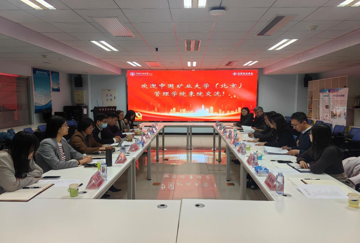 2024年12月26日,管理学院党委书记高洁、党委副书记李邦三、副院长黄辉一行8人赴中国石油大学(北京)经济管理学院调研交流。中国石油大学(北京)经济管理学院党委书记朱义清,副院长马春爱,党委副书记胡锐及相关系支部书记、部门负责人参加座谈交流。