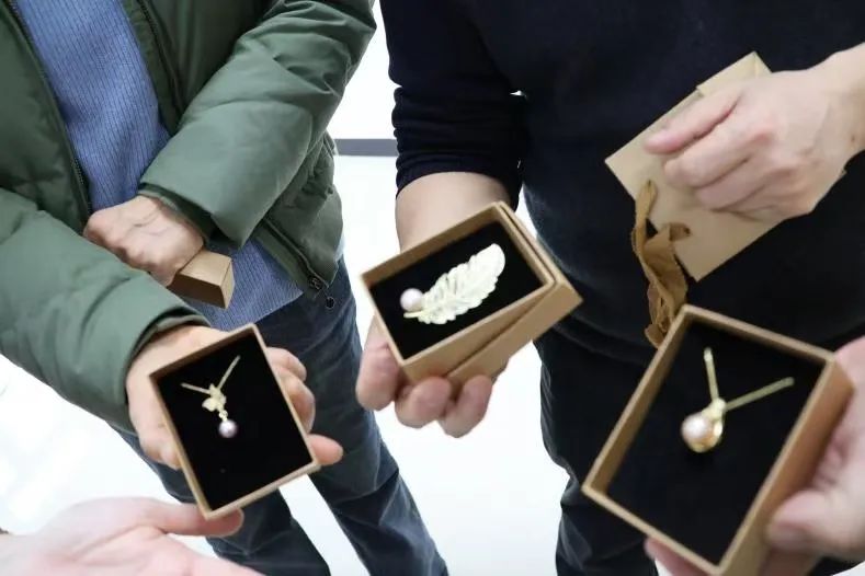 在首饰制作环节,大家为自己的珍珠搭配上精致配件,将其制作成项链、胸针、耳坠等饰品。一件件精美的饰品,凝聚着女老师们的创意与巧思,也承载着大家对美好生活的殷切希望。