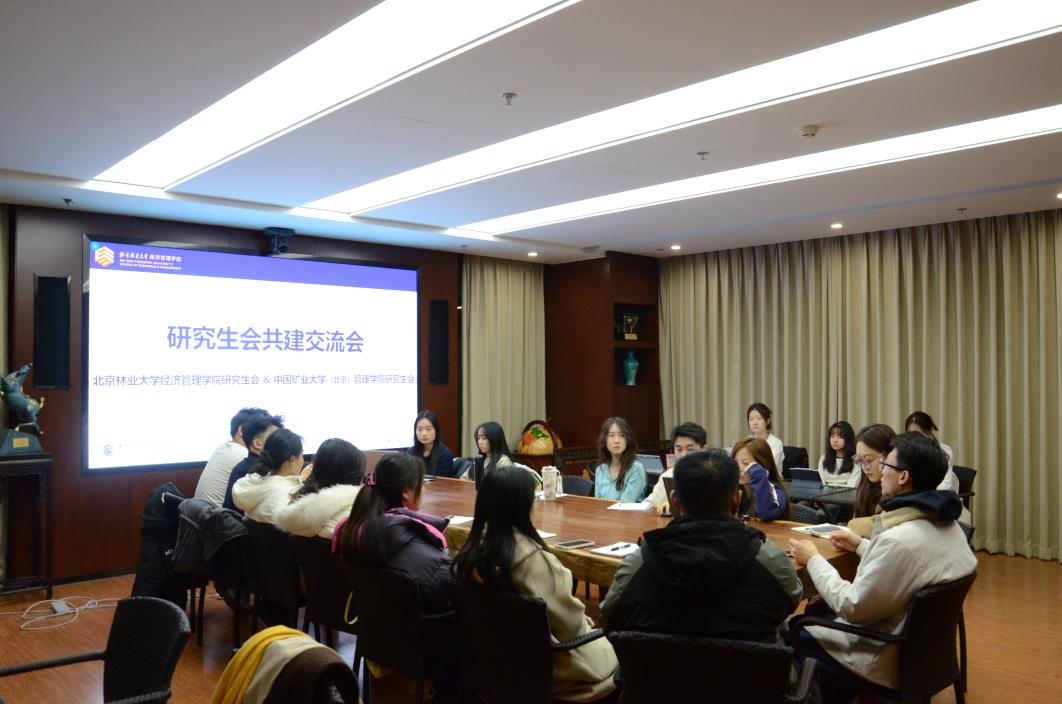 与北京林业大学经济管理学院研究生会共建交流会在北林学研中心C711会议室圆满举行。两校研会代表齐聚一堂,围绕研会组织建设与活动发展创新议题展开深度讨论,开启了校际研会互鉴共融的交流模式,搭起了研会协同创新的"高速服务区"。