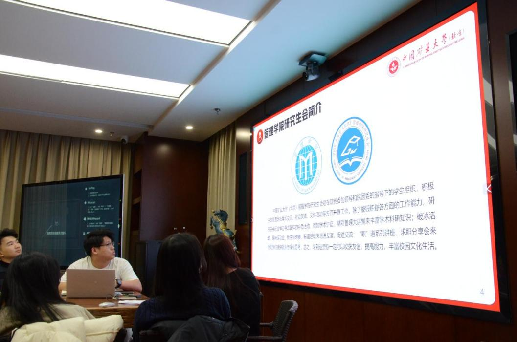 北京林业大学经济管理学院研会主席代表李茗荟和中国矿业大学(北京)研会主席代表顾栩瑞分别介绍了各自学校学院研究生会的组织架构、部门职责、管理模式,对对方的特色活动进行了深度的交流、了解和学习,希望在未来研会活动的举办中,能够将对方的特色活动纳入到自己的活动组织举办中。两校研会成员围绕党建活动、学术创新、求职就业、文体发展、学院宣传、对外联络、生活权益等议题,各自提出了相应的问题,双方研会成员给出积极的解答、意见和建议,进行了深入的交流。